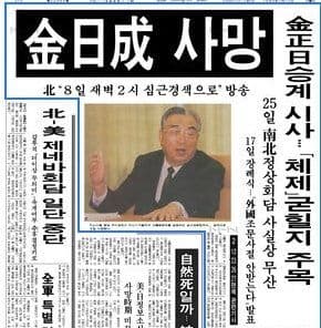 1994년 7월 8일 14시 북한 1대 지도자 김일성 수령이 사망하였다. 사망 원인은 급성 심근경색으로인한 사망이였다. 김일성 수령은 1912년생으로 조선민주주의 인민공화국을 건립 후 6.25 전쟁, 판문점 도끼 만행 사건 등 대한민국에게 끝없는 위협을 하여 대한민국 국민 안보 위협의 주요 인물이었다. 그가 죽은 후 예정된 남북정상회담이 취소되고 남북관계가 경색 되었으며 그의 아들인 김정일이 후계자로 권력이 승계되었다.