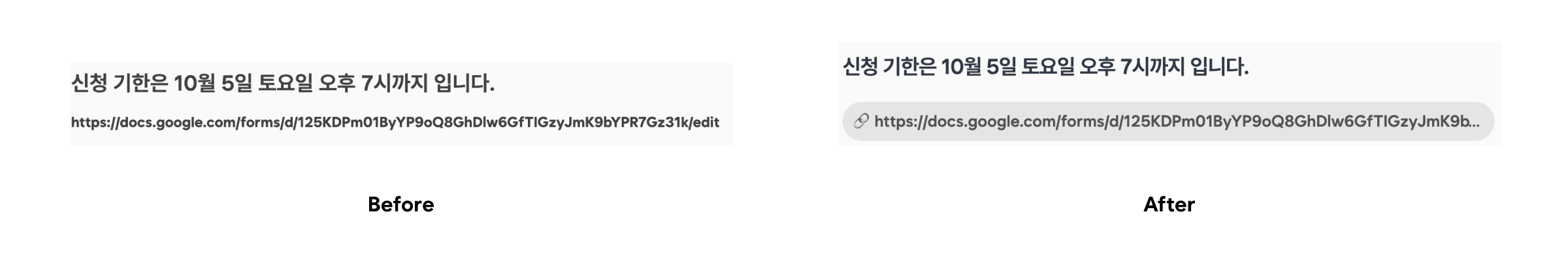 그냥 일반 텍스트처럼 보이던 링크를 강조되어 보이는 칩 형태로 변경했어요.